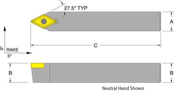 51945 SDPCN10-3D. Pos 55DEG Diamond Toolholder NH. Style P, 27.5DEG DCMT 3/8 I.C.