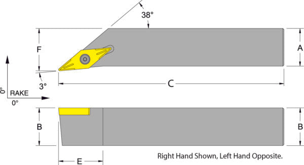 52015 SVJBL16-3D. Pos 35DEG Diamond Toolholder LH. Style J, Neg 3DEG VBMT 3/8 I.C.