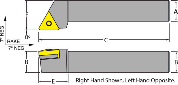 54457 TGR16-4D. Pos Triangle Toolholder RH. Style A, 0DEG TNG_ 1/2 I.C.