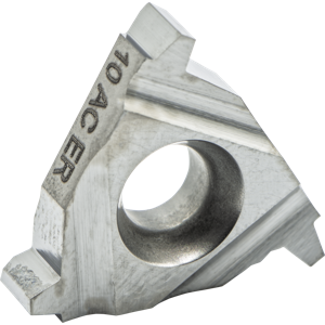 #Edges:3, #Teeth:1, CentrLn to Cut Edge:0.05"/1.3mm, Cut Edge to Matl:0.05"/1.3mm, EX-RH, Grade:K20, Has Chipbrkr:Breaking Corners, IC:(3/8)", Insert Size:16mm, Matl:Carbide, Pitch:10.00 TPI, Thread Form:ACME