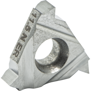 #Edges:3, #Teeth:1, CentrLn to Cut Edge:0.04"/1.1mm, Cut Edge to Matl:0.06"/1.5mm, EX-RH, Grade:K20, IC:(3/8)", Insert Size:16mm, Matl:Carbide, Pitch:11.50 TPI, Thread Form:NPT, w/o Chipbreaker