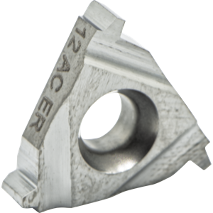 #Edges:3, #Teeth:1, CentrLn to Cut Edge:0.04"/1.1mm, Cut Edge to Matl:0.05"/1.2mm, EX-RH, Grade:K20, Has Chipbrkr:Breaking Corners, IC:(3/8)", Insert Size:16mm, Matl:Carbide, Pitch:12.00 TPI, Thread Form:ACME