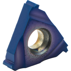 #Edges:3, #Teeth:1, CentrLn to Cut Edge:0.04"/0.9mm, Cut Edge to Matl:0.04"/1.0mm, EX-RH, Grade:BLU, Has Chipbrkr:Breaking Corners, IC:(3/8)", Insert Size:16mm, Matl:Carbide, Pitch:16.00 TPI, Thread Form:ACME