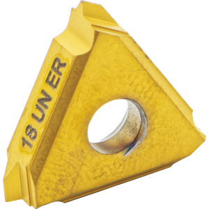 #Edges:3, #Teeth:1, CentrLn to Cut Edge:0.04"/1.0mm, Cut Edge to Matl:0.04"/1.0mm, EX-RH, Grade:MXC, IC:(3/8)", Insert Size:16mm, Matl:Carbide, Pitch:18.00 TPI, Thickness:0.14"/3.6mm, Thread Form:UN, w/o Chipbreaker
