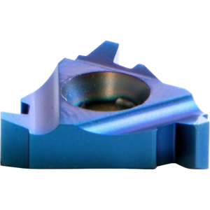 #Edges:3, #Teeth:1, CentrLn to Cut Edge:0.08"/2.0mm, Cut Edge to Matl:0.09"/2.3mm, EX-LH, Grade:BLU, Has Chipbrkr:Breaking Corners, IC:(1/2)", Insert Size:22mm, Matl:Carbide, Pitch:05.00 TPI, Thread Form:ACME