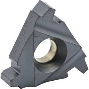 #Edges:3, #Teeth:1, CentrLn to Cut Edge:0.07"/1.8mm, Cut Edge to Matl:0.08"/2.1mm, EX-RH, Grade:BMA, Has Chipbrkr:Breaking Corners, IC:(1/2)", Insert Size:22mm, Matl:Carbide, Pitch:06.00 TPI, Thread Form:ACME