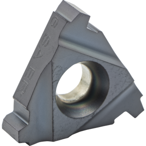 #Edges:3, #Teeth:1, CentrLn to Cut Edge:0.07"/1.8mm, Cut Edge to Matl:0.07"/1.8mm, EX-RH, Grade:BMA, Has Chipbrkr:Breaking Corners, IC:(1/2)", Insert Size:22mm, Matl:Carbide, Pitch:06.00 TPI, Thread Form:Stub Acme