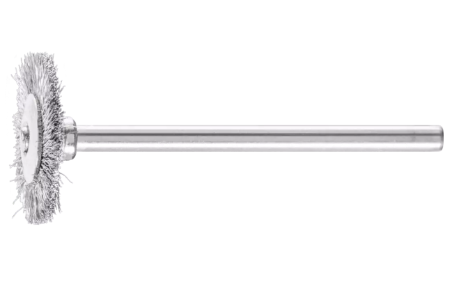 Pferd 83206. 1-1/2" Miniature Mtd. Wheel Brush - .005 CS Wire, 1/8" Stem. Comes 36 to a Pack, Please Order in Quantitites of 36