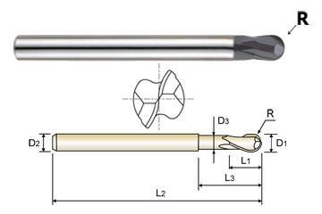 2 FLUTE 15 DEG HELIX BALL NOSE X-POWER FOR OVER 55HRC CARBIDE