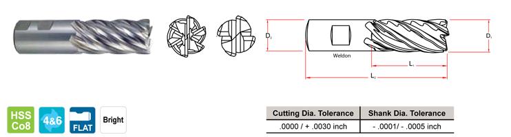 E2F64906 1 x 1 x 4 x 6-1/2 (.030) 4 FLUTE 30 DEG HELIX CENTER CUT COBALT SINE-POWER END MILL
