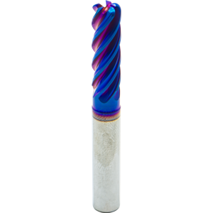#Flutes:5, Coated, Cut Dia:(1/4)", Edge Type:Radius, EX/IN-RH/LH, Grade:CR3, Has Cool:0, Helix Ang:36°/38°, Matl:Carbide, Neck Len:(3/4)", Overall Len:2.0", Rad:0.06", Shank Dia:(1/4)"