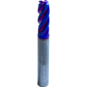 #Flutes:4, Coated, Cut Dia:(5/16)", Edge Type:Radius, EX/IN-RH/LH, Grade:CR3, Has Cool:0, Helix Ang:36°/38°, Matl:Carbide, Neck Len:(3/4)", Overall Len:2.5", Rad:0.06", Shank Dia:(5/16)"