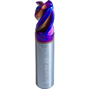 #Flutes:4, Coated, Cut Dia:(1/2)", Edge Type:Radius, EX/IN-RH/LH, Grade:CR3, Has Cool:0, Helix Ang:36°/38°, Matl:Carbide, Neck Len:(5/8)", Neck Len:2.5", Overall Len:2(1/2)", Rad:0.06", Shank Dia:(1/2)"