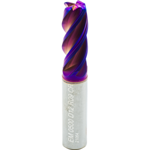 #Flutes:4, Coated, Cut Dia:(1/2)", Edge Type:Radius, EX/IN-RH/LH, Grade:CR7, Has Cool:0, Helix Ang:36°/38°, Matl:Carbide, Neck Len:1(1/4)", Overall Len:3", Rad:0.09", Shank Dia:(1/2)"