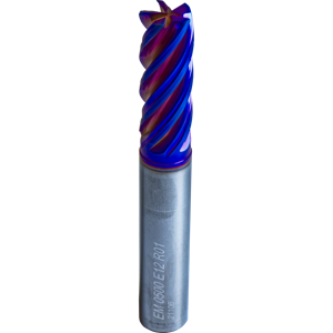 #Flutes:5, Coated, Cut Dia:(1/2)", Edge Type:Radius, EX/IN-RH/LH, Grade:CR3, Has Cool:0, Helix Ang:36°/38°, Matl:Carbide, Neck Len:1(1/4)", Overall Len:3(1/2)", Rad:0.015", Shank Dia:(1/2)"