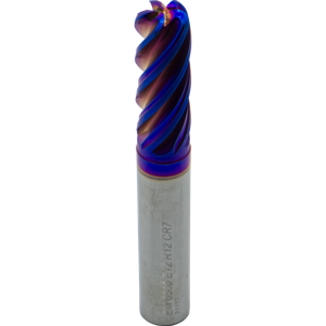 #Flutes:5, Coated, Cut Dia:(1/2)", Edge Type:Radius, EX/IN-RH/LH, Grade:CR7, Has Cool:0, Helix Ang:36°/38°, Matl:Carbide, Neck Len:1(1/4)", Overall Len:3(1/2)", Rad:0.12", Shank Dia:(1/2)"