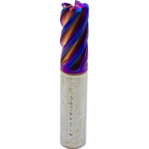 #Flutes:5, Coated, Cut Dia:(5/8)", Edge Type:Radius, EX/IN-RH/LH, Grade:CR3, Has Cool:0, Helix Ang:36°/38°, Matl:Carbide, Neck Len:1(1/4)", Overall Len:3(1/2)", Rad:0.09", Shank Dia:(5/8)"