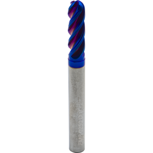 #Flutes:4, Coated, Cut Dia:(1/4)", Edge Type:Ball Nose, EX/IN-RH/LH, Grade:CR7, Has Cool:0, Helix Ang:36°/38°, Matl:Carbide, Neck Len:(3/4)", Overall Len:2(1/2)", Shank Dia:(1/4)"