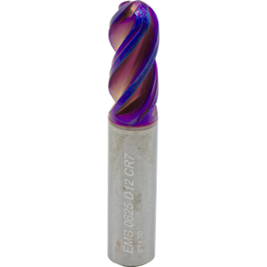 #Flutes:4, Coated, Cut Dia:(5/8)", Edge Type:Ball Nose, EX/IN-RH/LH, Grade:CR7, Has Cool:0, Helix Ang:36°/38°, Matl:Carbide, Neck Len:1(1/4)", Overall Len:3(1/2)", Shank Dia:(5/8)"