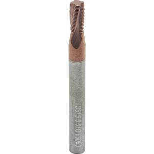 #Flutes:4, Cut Dia:5.3mm, Cutter Len:10.3mm, Grade:MT7, IN-RH/LH, Matl:Carbide, Overall Len:58mm, Pitch:00.50mm, Thread Standard:M6,M8