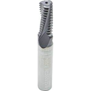 #Flutes:3, Cut Dia:10.5mm, Cutter Len:26.5mm, Grade:MT7, IN-RH/LH, Matl:Carbide, Overall Len:84mm, Pitch:12.00 TPI, Thread Standard:(9/16)