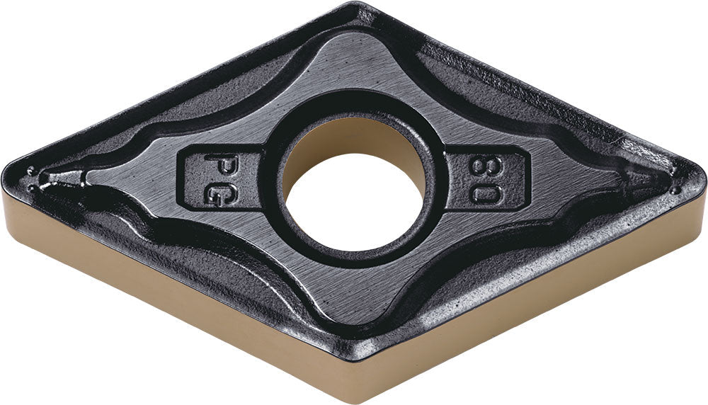 Kyocera DNMG 441PG CA125P Grade CVD Carbide, 55 Degree Diamond, Negative Rake Angle, Neutral Turning Insert for Light Interruption and Medium-Roughing in (P) Carbon/Alloy Steel