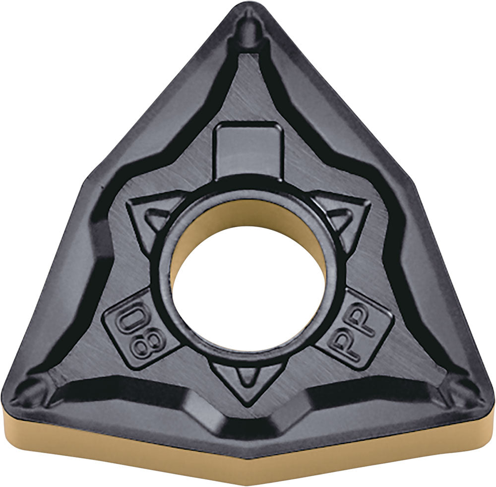 Kyocera WNMG 4305PP CA115P Grade CVD Carbide, 80 Degree Trigon, Negative Rake Angle, Neutral Turning Insert for Light Interruption and Finishing in (P) Carbon/Alloy Steel
