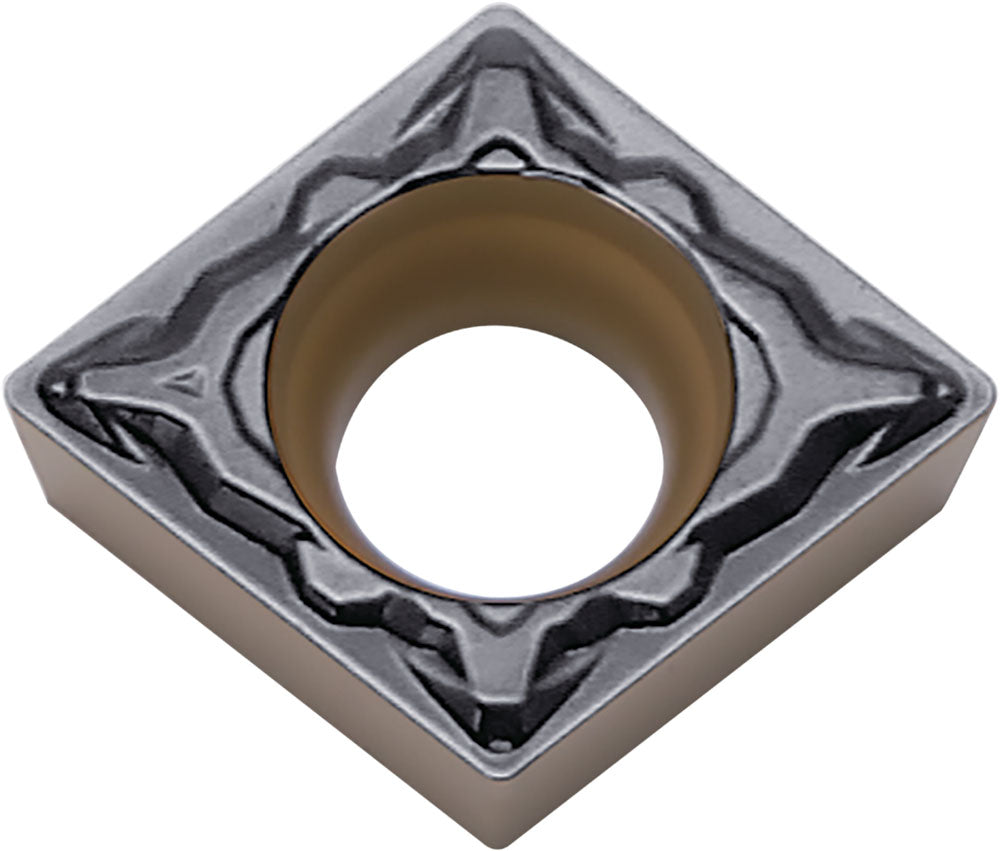 Kyocera CCMT 3252PP CA115P Grade CVD Carbide, 80 Degree Diamond, Positive Rake Angle, Neutral Turning Insert for Light Interruption and Finishing in (P) Carbon/Alloy Steel
